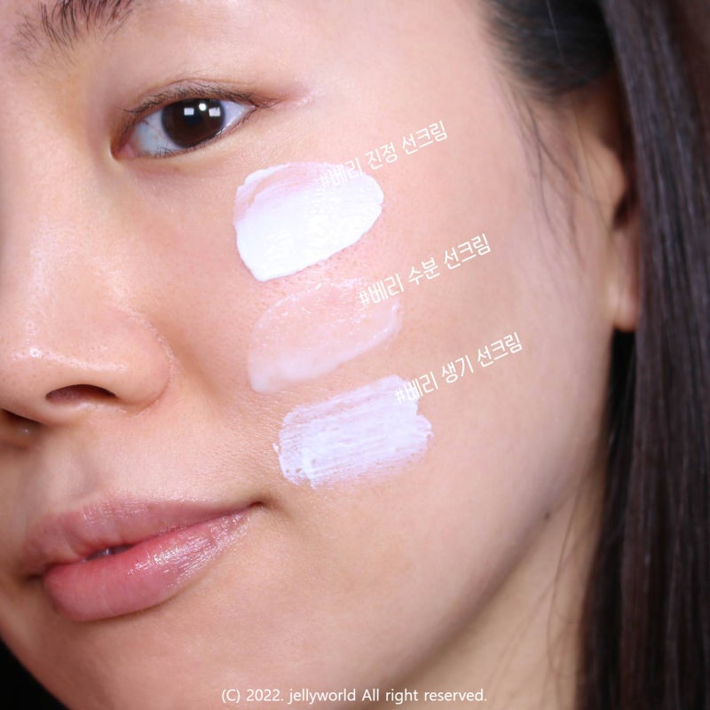 수분/생기/진정 3가지 타입으로 출시된 스킨푸드 베리 자외선 차단제는 피부 타입에 맞게 취향에 따라 선택하실 수 있습니다.촉촉한 텍스처를 원하시면 > 베리 수분 자외선 차단제, 순한 저자극 무기자차를 원하신다면 > 베리 진정 선크림, 화사한 생기를 원하신다면 > 베리 생기 자외선 차단제