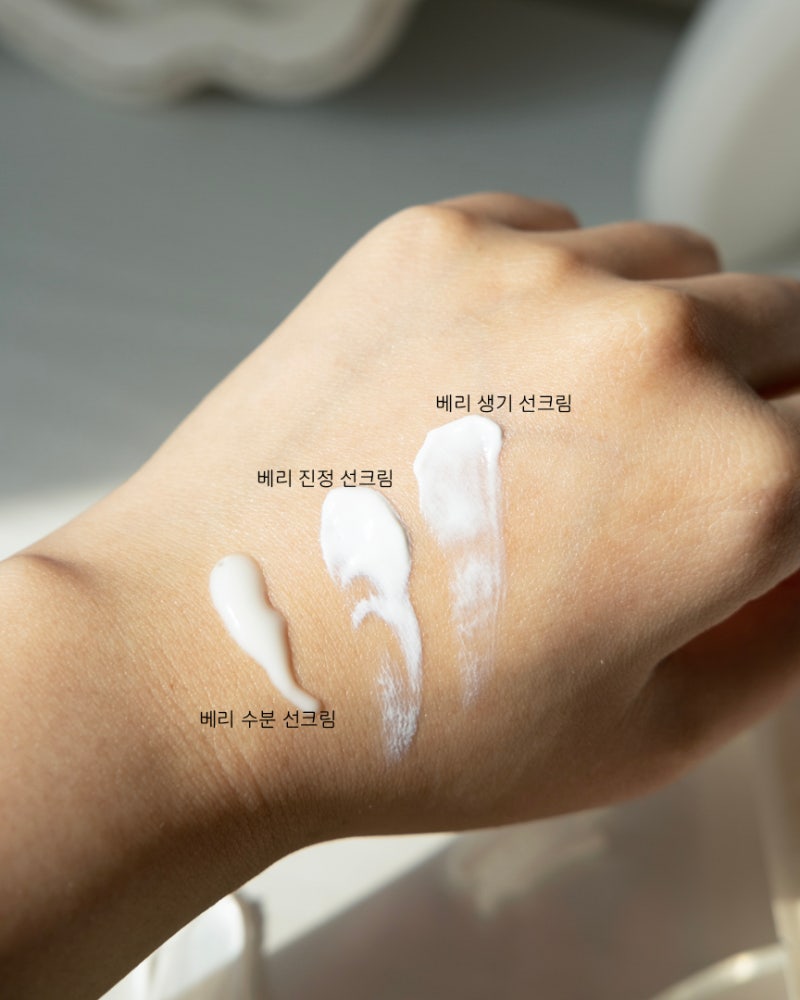 문지르면 투명해지면서 시원한 사용감을 느낄 수 있는 워터리 텍스처! 피부에 수분이 팡팡! 촉촉해집니다.피부 표현 너무 예쁘죠? ㅎㅎ 투명한 발림성 유기농을 좋아하시는 분들께 추천드리고 싶은 베리 수분 자외선 차단제입니다.
