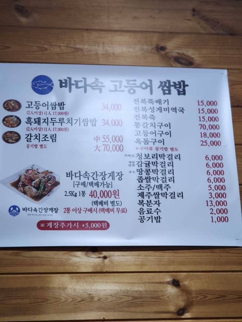 바닷속 고등어쌈밥 제주애월본점 제주특별자치도 제주시 애월읍 일주서로 7089 1층