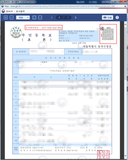 간편인증을 최종적으로 누르면 주민등록등본 인터넷 발급이 완료됩니다.