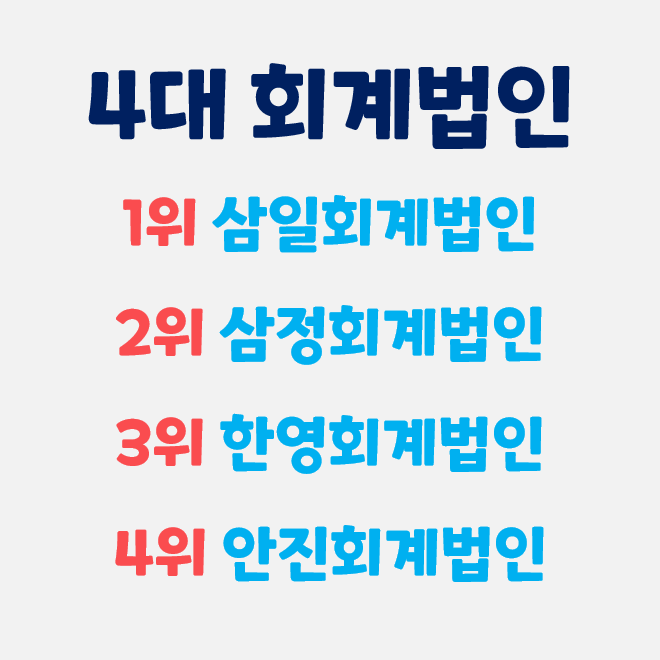 2022년 1월 31일 기준 현재 우리나라에는 207개 회계법인이 있다.그리고 이른바 빅4로 불리는 대형 회계법인 4곳이 존재한다.최신 자료 기준 2021년 회계법인 매출액 순위가 어떻게 되는지 궁금해서 찾아본다.