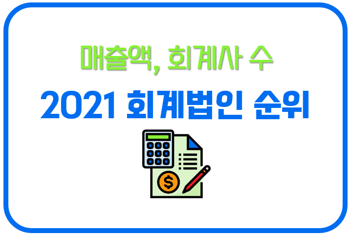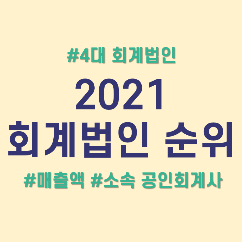 2022년 1월 31일 기준 현재 우리나라에는 207개 회계법인이 있다.그리고 이른바 빅4로 불리는 대형 회계법인 4곳이 존재한다.최신 자료 기준 2021년 회계법인 매출액 순위가 어떻게 되는지 궁금해서 찾아본다.
